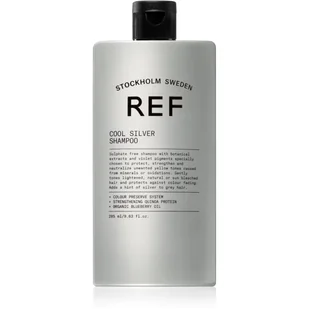 W razie potrzeby czynność powtórzyć. Zawartość: 285 ml REF Cool Silver Shampoo. Bogaty, kremowy szampon z fioletowymi pigmentami koloryzującymi. Pigmenty te neutralizują niepożądany żółty lub miedziany odcień włosów blond lub rozjaśnionych słońcem. Nadają również siwym włosom piękny srebrny połysk.