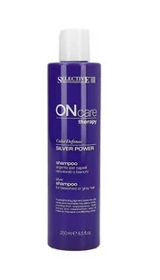SELECTIVE ON CARE THERAPY COLOR DEFENSE SILVER POWER SREBRNY SZAMPON DO WŁOSÓW 250ML Szampon Selective jest polecany do stosowania w pielęgnacji włosów rozjaśnianych, dekoloryzowanych i siwych. Selective On Care Therapy to produkty do profesjonalnej i kompleksowej pielęgnacji włosów i skóry głowy. Opakowania są pokryte srebrem w celu zapewnienia skutecznej i trwałej ochrony mikrobiologicznej. Formuły produktów z tej linii zostały stworzone na bazie wody oczyszczonej, nie zawierają sztucznych barwników. Delikatnie oczyszcza włosy Ujednolica i wyrównuje kolor Stabilizuje pigmenty wewnątrz włókien Podkreśla połysk włosów Ochładza niechciane, żółte tony Zapewnia optymalny poziom pH Szampon zawiera kompleksy Stabilflux i Vitalflux, które odżywiają i regenerują włosy.