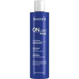 SELECTIVE PROFESSIONAL ON CARE STIMULATE SHAMPOO SZAMPON STYMULUJĄCY Pojemność: 250 ml Szampon stymulujący, zapobiegający wypadaniu włosów. Dzięki cennym czynnym składnikom o szczególnym działaniu, zawartych w nowoczesnych płynnych substancjach ONcare Stimulflux, Vitaflux oraz Defenseflux, wykazuje szczególnego rodzaju działanie myjące, przywracając równowagę naturalnych procesów fizjologicznych, zapobiega wypadaniu włosów oraz wzmacnia strukturę włosów osłabionych. Nadaje włosom zdrowy wygląd oraz zwiększa ich gęstość. Pozostałe składniki aktywne: