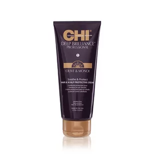 CHI Deep Brilliance Soothe & Protect to krem, który sprawia, że prostowanie jest bezpieczne dla włosów i skóry głowy. Jego skład wzbogacają: oliwa z oliwek, masło shea, ekstrakt z kwiatów gardenii, olej kokosowy i ekstrakt z rozmarynu i rumianek. Dzięki tym substancjom krem zyskał silne właściwości ochronne, odżywcze i nawilżające. Skutecznie chroni przed uszkodzeniami i niweluje dyskomfort podczas zabiegu.
