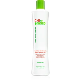 Profesjonalna kuracja do włosów naturalnych z efektem prostowania CHI Enviro daje efekt intensywnego wygładzenia pasm, który utrzymuje się aż do 4 miesięcy. Kosmetyk jest dedykowany włosom naturalnym oraz takim, które są trudne w układaniu. W skład formuły wchodzą jedwab oraz kompleks perłowy. Składniki te sprawiają, że włosy są aż do 95% bardziej wygładzone. Dodatkowo kosmetyk zapewnia regenerację zniszczonym pasmom i nadaje im jedwabisty połysk.
