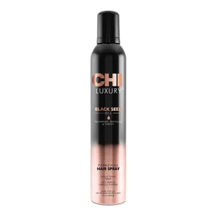 Lakier do włosów CHI Luxury zapewnia elastyczne utrwalenie. Kosmetyk dodaje włosom niesamowitą objętość. Ponadto posiada formułę, która błyskawicznie wysycha. W składzie znajduje się olejek z czarnuszki, który zapewnia efektowne i długotrwałe wykończenie oraz efekt włosów w ruchu. Co ważne, lakier nie skleja włosów oraz nie tworzy na nich nielubianego efektu hełmu.