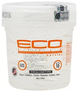 ECO STYLE PROFESSIONAL STYLING GEL KRYSTAL MAX HOLD Żel do stylizacji Eco Style Krystal to mocny żel, idealny do każdego rodzaju i koloru włosów. Ten lekki żel do włosów zapewnia utrwalenie wbrew grawitacji oraz dodaje blasku i puszystości każdej stylizacji. czysty, świeży ochrona przed promieniowaniem UV, wysoki poziom PVP i białka pszenicy zmniejsza porowatość, nabłyszcza, utrwala fryzurę i utrzymuje sprężystość Maksymalne trzymanie 10/10 Świetny dla wszystkich typów włosów. Sposób użycia: Nakładaj na suche lub mokre włosy.