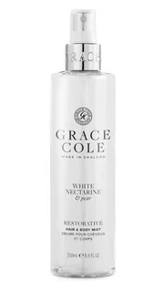 Poznaj mgiełkę do włosów i ciała Biała Nektarynka i Gruszka od Grace Cole!Mgiełka do ciała i włosów to luksusowy dodatek do Twojej codziennej rutyny pielęgnacji. Lekka iodświeżająca formuła pozwoli Ci nosić swój ulubiony zapach przez cały dzień, jednocześnie nawilżając skórę i włosy. Zapomnij o ciężkich perfumach – teraz możesz poczuć się świeżo i luksusowo, bez obciążania swojej skóry. Otul swoją skórę i włosy wyjątkowym zapachem – jak pachnie mgiełka?Wspaniałe, pikantne zapachy soczystej nekta