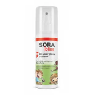 - po kuracji szamponem SORA FORTEZalecany do stosowania:dla osób narażonych na kontakt z wszami,po kuracji szamponem SORA FORTE.Sora lotion zawiera w swoim składzie naturalne olejki ochronne z cytronelli, rozmarynu, lawendy oraz mentol, nadające skórze i włosom przyjemny, cytrusowy zapach. Receptura została wzbogacona o alantoinę, D-pantenol, wyciąg z aloesu, rumianku i nagietka oraz keratynę roślinną. Lotion łagodzi podrażnienia oraz zmniejsza uczucie swędzenia skóry głowy narażonej na kontakt z wszami. Ponadto sprawia, że włosy łatwo się rozczesują, są nawilżone, miękkie i gładkie w dotyku. Systematycznie stosowany poprawia wygląd i kondycję zarówno włosów, jak i skóry głowy.SkładIngredients/Składniki: Aqua, Alcohol Denat., Betaine, PEG-40 Hydrogenated Castor Oil, Panthenol, Allantoin, Chamomilla Recutita Flower Extract, Calendula Officinalis Extract, Lavandula Angustifolia Flower Oil, Rosmarinus Officinalis Leaf Oil, Menthol, Aloe Barbadensis Leaf Extract, Cymbopogon Winterianus Herb Oil, Cetylpyridinium Chloride, Hydrolyzed Wheat Protein, Propylene Glycol, Diazolidinyl Urea, Methylparaben, Propylparaben, Butylene Glycol, Phenoxyethanol, Sodium Benzoate, Citric Acid, Citral, Eugenol, Geraniol, Farnesol, Linalool, Citronellol, Limonene.