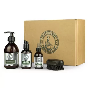 Marka Barbieri Italiani doskonale wie, co oznacza odpowiednia pielęgnacja brody, dlatego w tym zestawie znajdziesz absolutnie wszystkie produkty niezbędne do uzyskania zadbanego wyglądu zarostu. W skład zestawu wchodzi: • Szampon do brody – 250 ml• Nawilżający balsam do brody – 100 ml• Olejek do brody – 50 ml• Szczotka do brody