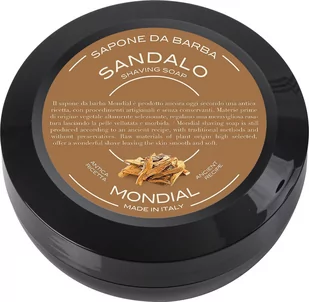 Mondial Mydło do golenia z drzewa sandałowego 60 g. Drzewo sandałowe tradycyjne, rzadkie i cenne. Jest to drzewny i gęsty zapach z trwałymi perfumami. Zapach ten może złagodzić napięcia fizyczne, pomaga zwalczyć depresję i apatię. Mydło do golenia Mondial jest nadal produkowane zgodnie z tradycyjną recepturą, z olejkami eterycznymi, intensywnymi zapachami i bez konserwantów.
