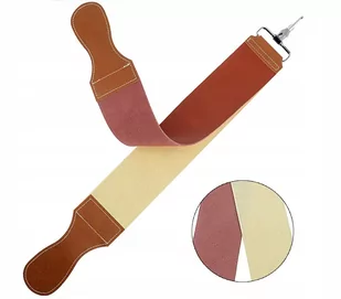 Pas do ostrzenia / polerowania brzytwy Opis przedmiotu: Nowy pas do ostrzenia / polerowania brzytwy Firma: ZY Materiał: płótno i naturalna skóra bydlęca Długość całkowita 52cm Szerokość 6,5cm / 2,56" Grubość pasa: 0,38mm Waga: