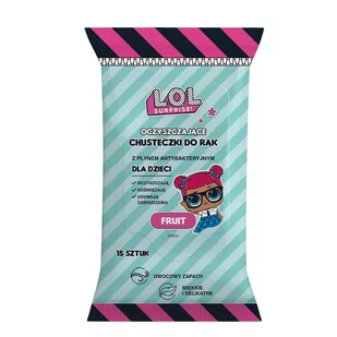 L. O. L Surprise Fruit - oczyszczające chusteczki do rąkOczyszczające chusteczki z płynem antybakteryjnym sprawdzą się doskonale w podróży, szkole etc. Skutecznie oczyszczają skórę i usuwają zabrudzenia. Pozostawiają odświeżoną i czystą skórę.