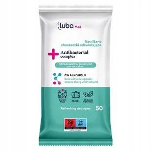 Med Antibacterial Complex nawilżane chusteczki odświeżające z kompleksem antybakteryjnym 50szt Luba Nowoczesna formuła z kompleksem antybakteryjnym Chusteczk...