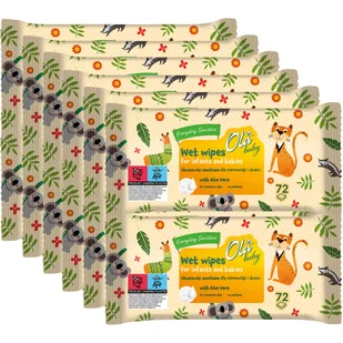 12 x OLA baby Sensitive Nawilżane Chusteczki Dla Niemowląt i Dzieci 72 szt. Nawilżane Chusteczki Dla Niemowląt i Dzieci Ola Baby Sensitive to produkt opracowany z myślą o wrażliwej skórze maluchów. Posiadają łagodną formułę oraz pH neutralne dla skóry, dzięki czemu skutecznie oczyszczają, odświeżają i pielęgnują delikatną skórę niemowląt i małych dzieci. Formuła zawiera ekstrakt z aloesu wykazujący właściwości nawilżające i kojące. Chusteczki sprawiają, że skóra jest miękka i gładka w dotyku.
