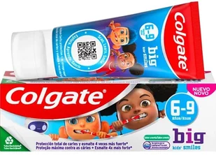 Colgate Big Kids’ Smiles chroni zęby Twojego dziecka. Dzięki technologii zmiany koloru (z białego na niebieski) mycie zębów staje się zabawą, zachęcając dzieci do szczotkowania przez zalecane 2 minuty. Delikatny miętowy smak sprawia, że dzieci chętnie myją zęby, dbając o zdrowie jamy ustnej.