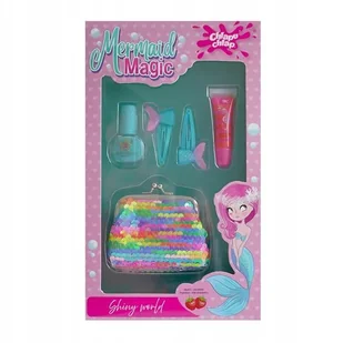 ZESTAW MERMAID MAGIC 5 W 1: cekinowa portmonetka, lakier do paznokci, błyszczyk i spinki do włosów. Zapach poziomki 10 ml (2x 5ml)