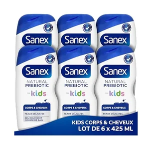 SANEX - Naturalny Prebiotyk Żel pod prysznic dla dzieci do ciała i włosów - Delikatna skóra - 12 godzin nawilżenia - zatwierdzony przez pediatrów - kompleks prebiotyczny - Testowany dermatologicznie - 425 ml x6