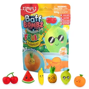 ZIMPLI - Duża kula do kąpieli z niespodzianką, 6 zabawek z owocami-niespodzianką do zebrania, jedna figurka w każdej kuli, kolekcjonerskie zabawki dla dziewcząt i chłopców, kule do kąpieli
