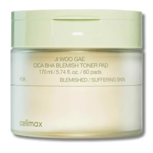 Uczyń Celimax Ji Woo Gae Cica BHA Blemish Toner Pad 60pads twoim codziennym rozwiązaniem dla czystej, zbilansowanej cery każdego dnia, w koreańskim stylu!