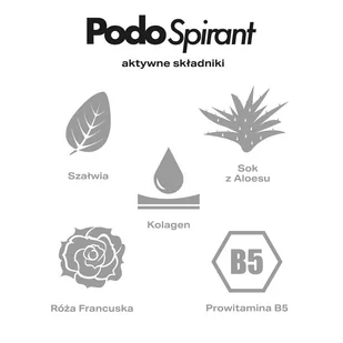 Podoland PodoSpirant 50 mlPodoSpirant nie tylko blokuje wydzielanie potu i eliminuje bakterie odpowiedzialne za jego zapach, ale zawiera także składniki, w tym ekstrakty z ziół, chroniące skórę przed szorstkością, uszkodzeniami i suchością.