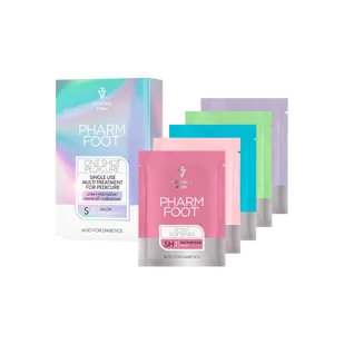 Jednorazowy multi-zabieg pedicure w saszetkach. Kompleksowy zabieg do pielęgnacji stóp. Rekomendowany na pękające pięty i zrogowacenia skóry. Pomocny przy zmiękczaniu i oczyszczaniu okolic około-paznokciowych. Polecany również dla diabetyków. 1 zabieg: 3 x 5 ml, 2 x 3 ml