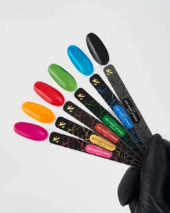 F. O. X Art-paint Vitrage — kolorowe półtransparentne farby hybrydowe 2w1 do stylizacji paznokci. Mogą być używane jako lakier hybrydowy dla pokrycia całościowego, lub dla tworzenia wzorów i malowania, o ile utrzymują linie i zachowują przezroczystość.