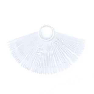 WZORNIK WACHLARZ - 50 TIPSÓW PRZEZROCZYSTY Wzornik wspaniale prezentuje: - kolorowe żele i akryle, - lakiery, - lakiery hybrydowe, - wzorki paznokci. Wzorniki przezroczyste. Do pomalowania 50 tipsów. GALERIA ZDJĘĆ