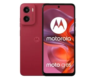 Smartfon Motorola Moto G05 4 GB/128 GB 6,67” 4G GPS 50/8Mpx Plum Red Motorola Moto G05 to smartfon z 6,67-calowym ekranem HD+ i odświeżaniem 90Hz. Ma 4 GB RAM i 128 GB pamięci wewnętrznej, którą można rozszerzyć. Telefon działa w sieci 4G i ma baterię 5000 mAh. Aparat główny ma 50Mpx, a przedni 8Mpx. NAJWAŻNIEJSZE PARAMETRYTyp: