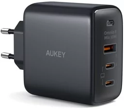 Ładowarka sieciowa Aukey Omnia II ( PA-B6T BK) GaN 65W Uniwersalna / 2x USB-C / 1x USB-A Potęga Prędkości Odkryj potencjał szybkiego i wszechstronnego ładowania dzięki ładowarce GaN 65W Aukey Omnia II (PA-B6T BK) . Ta niewielka , lecz potężna ładowarka z trzema portami zapewniającymi obsługę Power Delivery , to klucz do ładowania dowolnych urządzeń, od smartfonów po MacBooki, w mgnieniu oka. Kolor producenta: Black (czarna) Przedmiotem sprzedaży jest sama ładowarka sieciowa, pozostałe akcesoria widoczne na zdjęciach służą jedynie przedstawieniu jej funkcjonalności. Niezwykła efektywność z technologią GaN Dzięki zastosowaniu azotku galu (GaN) , Aukey Omnia II oferuje wyjątkową efektywność ładowania przy kompaktowych rozmiarach.