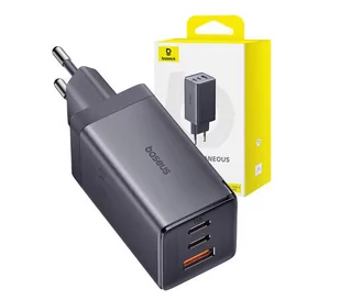 Baseus GaN5 2x USB-C + USB 65W + kabel 1m Szary