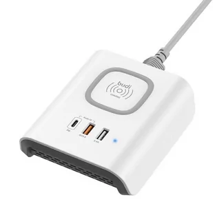 BUDI Budi Ładowarka bezprzewodowa z technologią Qi oraz dodatkowymi portami USB biały BDG3A2000W