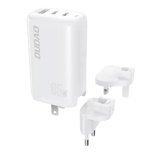 Dudao 3-portowa ładowarka GaN 3w1 (EU, US, UK) 2 x Typ C (PD) + USB (QC) 65W biała (A7PRO)