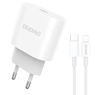 Dudao szybka ładowarka sieciowa USB-C Power Delivery 20W biała + kabel USB-C - Lightning 1m (A8SEU) Inteligentna ładowarka sieciowa ze złączem europejskim oraz wsparciem dla szybkiego ładowania Power Delivery 20W. Kompaktowy gadżet wyposażony w port USB Typ C PD. Doskonały do odnawiania energii urządzeń mobilnych takich jak smartfony, tablety czy nawet laptopy. Przewód w zestawie - Do ładowarki dołączony jest mocny kabel USB-C - Lightning o długości 1m. Błyskawiczne odnawianie energii – Dzięki błyskawicznemu ładowaniu PD, Twój sprzęt może odzyskać pełnię mocy nawet kilka razy szybciej niż przy standardowych ładowarkach.