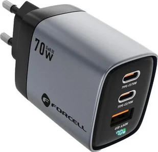 0, które pozwalają skrócić czas ładowania urządzeń do minimum – naładuj baterię do 100% nawet w ciągu 1 godziny. Szybsze ładowanie możliwe jest również dzięki wysokiej mocy (70 W). Technologia GaN III Wykonane z azotku galu (GaN) ładowarki GaN są mniejsze oraz bardziej wydajne i energooszczędne niż tradycyjne modele. Radzą sobie ze znacznie wyższym woltażem i temperaturą niż krzem, minimalizując ryzyko awarii i usterki do minimum. Ładuj bezpiecznie z ładowarkami marki Forcell.