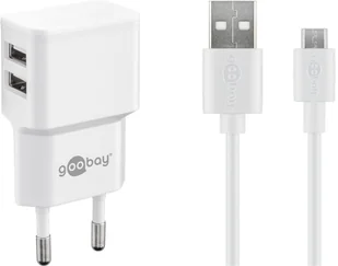 Goobay 44985 Zestaw do podwójnego ładowania micro-USB (12 W), biały, 1 m - Zasilacz z 2 portami USB, kabel micro USB, 1 m, biały