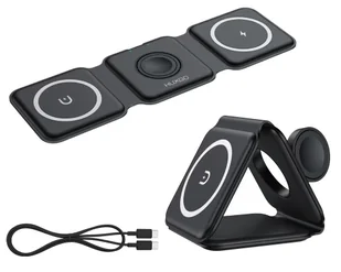 HUXGO, kompaktowa bezprzewodowa ładowarka indukcyjna, składana 3 w 1, czarna BY-MF82_B