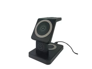 Charles S316 – nowa jakość ładowania Ładowarka została wyposażona w trzy cewki ładowania o najwyższej jakości. Zastosowane technologie pozwalają na ładowanie trzech urządzeń na raz lub całkowicie osobno. Zgodność ze standardem Qi oraz Quick Charge umożliwia osiągnięcie maksymalnej mocy 15W, dzięki czemu Twoje urządzenia naładują się bardzo szybko. Bezprzewodowe ładowanie, solidna konstrukcja, jakość wykonania Charles S316 to urządzenie wykonane z najwyższej jakości tworzywa ABS. Magnesy wykorzystane w tej technologii trzymają mocno przykładane do niej urządzenia.