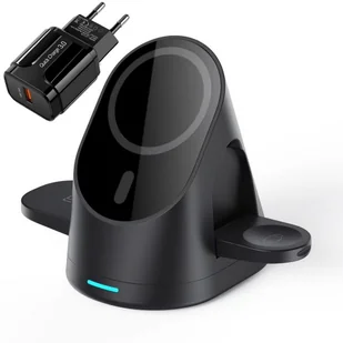 Opis i cechy produktu: Kompaktowa i funkcjonalna ładowarka obsługująca system magnetycznego przywierania MagSafe Cewka pionowa jest przeznaczona dla nowych modeli iPhone posiadających pierścień magnetyczny lub etui z systemem MagSafe Dla starszych modeli lub etui bez MagSafe, w zestawie jest metalowa blaszka do naklejenia na telefon lub etui do wspomagania przywierania Druga cewka magnetyczna jest dla ładowania zegarków Apple Watch wszystkich serii Trzecia cewka na podstawie (pozioma) pozwala na naładowanie słuchawek bezprzewodowych AirPods lub podobnych Inteligentny chipset zarządzający mocą dostarczaną do poszczególnych urządzeń oraz posiadający szereg zabezpieczeń Gniazdo zasilające całą stację to port USB typu C (do zestawu dołączony jest kabel USB do USB-C) W zestawie kompatybilna ładowarka sieciowa USB 20W W przypadku korzystania z dodatkowych etui na plecki bez wbudowanego systemu MagSafe, przywieranie magnetyczne cewki pionowej może nie utrzymać ciężaru telefonu. Zalecane etui z pierścieniem magnetycznym lub naklejenie blaszki z zestawu Model: PGN LFX-179 Materiał: Tworzywo ABS, PC, silikon Producent: