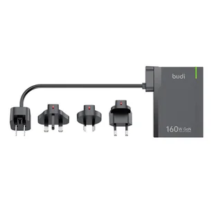 Ładowarka sieciowa Budi 350, GaN PD+ QC3.0, 6xUSB-A, 160W US/UK/EU (czarna)