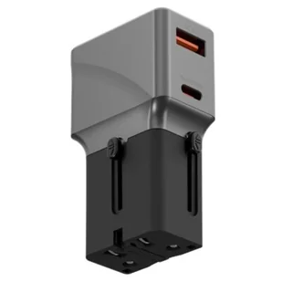Ultra-przenośny adapter podróżny PD25W z wymiennymi wtyczkami, wyposażony w porty USB-C i USB-A, które zapewnią zasilanie Twoim urządzeniom. PD25W do ładowania tabletów i przenośnych urządzeń do gier. System blokady pinowej zabezpiecza wysuniętą wtyczkę w ustalonej pozycji podczas użytkowania. Technologia identyfikacji mocy do określania prądu ładowania w zależności od potrzeb urządzenia.