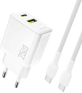 Ładowarka sieciowa USB-A USB-C z kablem USB-C GaN PD QC 25W - biała Ładowarka sieciowa USB-A USB-C z kablem USB-C GaN PD QC 25W - biała