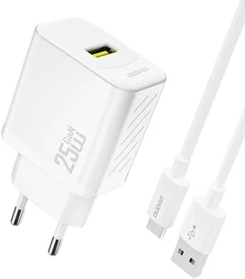 Ładowarka sieciowa USB-A z kablem USB-A - USB-C GaN 25W - biała Ładowarka sieciowa USB-A z kablem USB-A - USB-C GaN 25W - biała