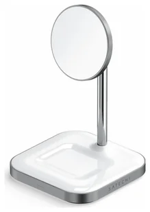 Dwa to lepiej niż jeden Posiada wbudowaną magnetyczną ładowarkę bezprzewodową do iPhone'a 12 (7,5 W) i wyznaczoną bezprzewodową podkładkę ładującą do słuchawek AirPods Pro (5 W), aby z łatwością zasilać oba urządzenia. Magnetyczny uchwyt Wyposażony w magnetyczne mocowanie dla modeli iPhone 12 z MagSafe, stojak umożliwia wygodne oglądanie bez użycia rąk dzięki regulowanemu uchwytowi, który ułatwia manewrowanie pod idealnym kątem. To małe rzeczy Zawiera wskaźnik LED, dzięki któremu będziesz wiedzieć, kiedy Twoje urządzenia są ładowane, wygodny port USB-C i antypoślizgową wyściółkę na spodzie, która zapobiega przesuwaniu się podstawki.