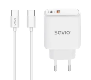 Ładowarka sieciowa z kablem USB-C Savio LA-10 30W QC PD 3.0 Biała
