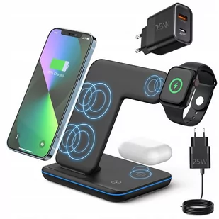⭐NOWA AKTUALIZACJA MODELU + ⚡ZASILACZ 25W⚡ ⚡Multi-Device Charger 3w1⚡ ⚡Ładowarka Indukcyjna Qi N-GY-Z5A 15W do Apple Watch Airpods iPhone⚡ Szukasz uniwersalnej, wielofunkcyjnej ładowarki bezprzewodowej, za pomocą której naładujesz jednocześnie swojego smartfona, smartwatcha i słuchawki? Mamy coś specjalnie dla Ciebie! Niezawodny produkt o przemyślanej konstrukcji w formie stojaka znacząco zwiększy komfort codziennego użytkowania Twoich podręcznych gadżetów i pomoże zachować porządek na biurku. Główne cechy produktu: Wykonana z wysokiej jakości przyjemnego w dotyku materiału Estetyczne i przyjemne w dotyku półmatowe wykończenie Wkładki z gumy antypoślizgowej zapewniają stabilność konstrukcji i bezpieczeństwo ładowanych urządzeń Kompatybilna z wieloma popularnymi modelami smartfonów (Apple, Samsung, Huawei, Xiaomi i inne) Duża moc ładowania - aż 15W zapewnia szybsze ładowanie telefonu Zasilacz 25W dodany do zestawu 3w1: Umożliwia jednoczesne ładowanie trzech urządzeń: smartfona, smartwatcha i słuchawek bezprzewodowych ładowanych bezprzewodowo Magnetyczny punkt ładowania zegarka Apple Watch Możliwość ładowania popularnych modeli słuchawek posiadających etui wspierające standard ładowania indukcyjnego Konstrukcja stojaka pozwala utrzymać wyświetlacz smartfona na widoku w trakcie ładowania oraz zasilać telefon zarówno w pionie jak i poziomie Inteligentne oświetlenie LED wzdłuż podstawki wskazujące stan zasilania, z możliwością wyłączenia go Przycisk dotykowy pozwalający włączyć lub wyłączyć podświetlenie LED Do zestawu dołączony kompatybilny kabel USB-C na USB o optymalnej długości 1 metra Zapakowana w oryginalne opakowanie producenta.