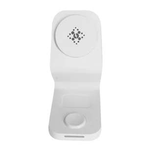 Stacja ładująca 3 w 1 do jednoczesnego ładowania iPhone'a, zegarka Apple Watch i słuchawek Airpods. Ładowarka MagSafe 15 W, magnetyczna podstawka ładująca i podstawka do ładowania bezprzewodowego. Działa jako stojak wideo. Kompaktowa i prosta konstrukcja. Dostarczony kabel USB-C.