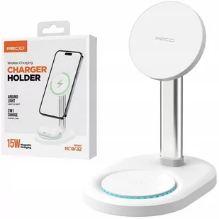 STOJAK Z ŁADOWARKA BEZPRZEWODOWA QI DO IPHONE 15 14 13 12 / SŁUCHAWEK RECCI