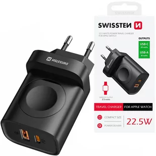 SWISSTEN Czarna Ładowarka sieciowa iWatch, USB-A, USB-C