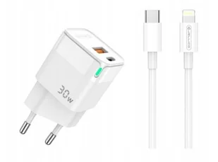 Szybka Ładowarka 30W USB-C Do iPhone 13/14 + Kabel Jellico C44 to zaawansowana ładowarka sieciowa 30W wyposażona w dwa gniazda jedno to USB QC i drugie USB-C PD. Zapewnia wystarczającą ilość energii do szybkiego ładowania nawet największych dostępnych urządzeń mobilnych a dodatkowy kabel Lightning pozwoli na korzystanie z niej od razu po zakupie. Klasyczny wygląd pasuje do wszystkich rodzajów wnętrz a jakość wykonania wskazuje, że jest to urządzenie solidne i trwałe. Specyfikacja: Napięcie wejściowe: