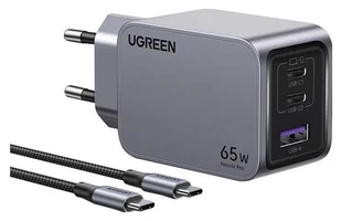 Ugreen Nexode Pro, USB + 2x USB-C, 65W + kabel USB-C 1. 5m czarna Ciesz się szybkim ładowaniem swoich urządzeń. Ładowarka sieciowa Ugreen Nexode Pro oferuje moc sięgającą 65 W, a dzięki 3 dostępnym portom (1x USB-A, 2x USB-C) pozwala podłączyć aż 3 sprzęty jednocześnie. Wyróżnia się także szeroką kompatybilnością i kompaktową konstrukcją, możesz więc mieć ją zawsze przy sobie. Do 3 urządzeń jednocześnie Z Ugreen nie musisz czekać, aż jedno urządzenie będzie naładowane, zanim podłączysz kolejne.