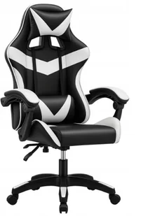 Fotel biurowy gamingowy ergonomiczny biało-czarny z poduszkami ekoskóra