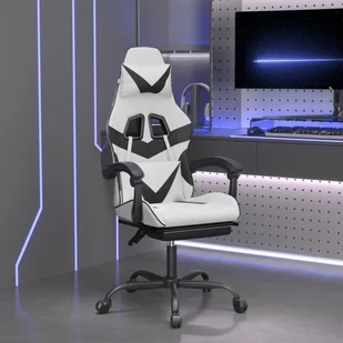 Vidaxl obrotowy fotel gamingowy z podnóżkiem, biało-czarny