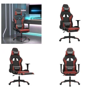 vidaXL Fotel gamingowy z masażem i podnóżkiem z imitacji skóry w kolorze czerwonego wina - fotel gamingowy - fotele gamingowe - fotel biurowy - krzesło